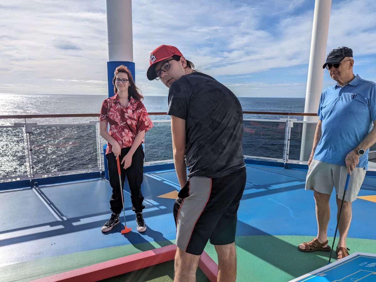 For less heights-focused activities, the Carnival Panorama also has a nine-hole mini-golf course that’s fun to do. This isn’t a super fancy mini-golf course, but it works well for the ship, and we have a blast doing it almost every day we are on the ship.