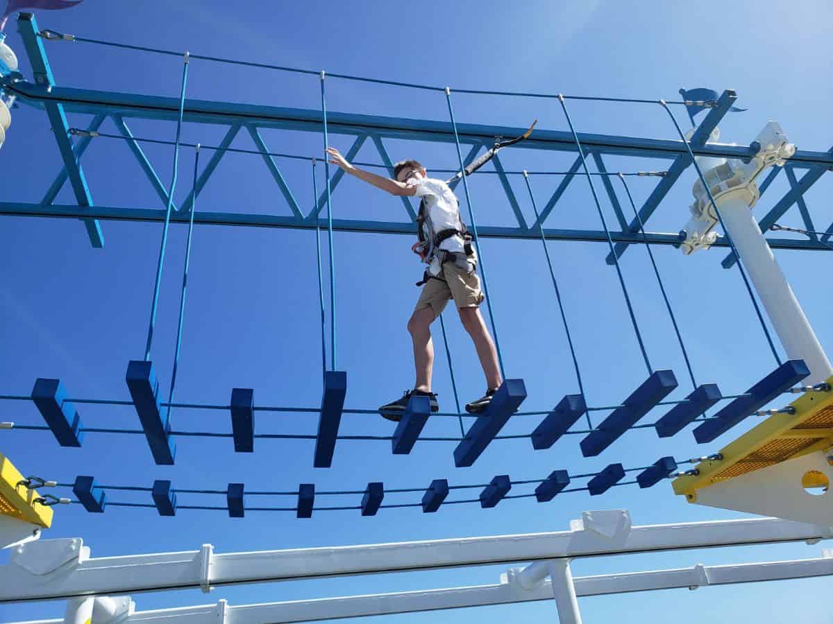 My kids and I also enjoy the ropes course with an entrance just across from the SkyRide. The ropes course here is easier than it was on some other ships we’ve cruised on, but we still enjoyed it.