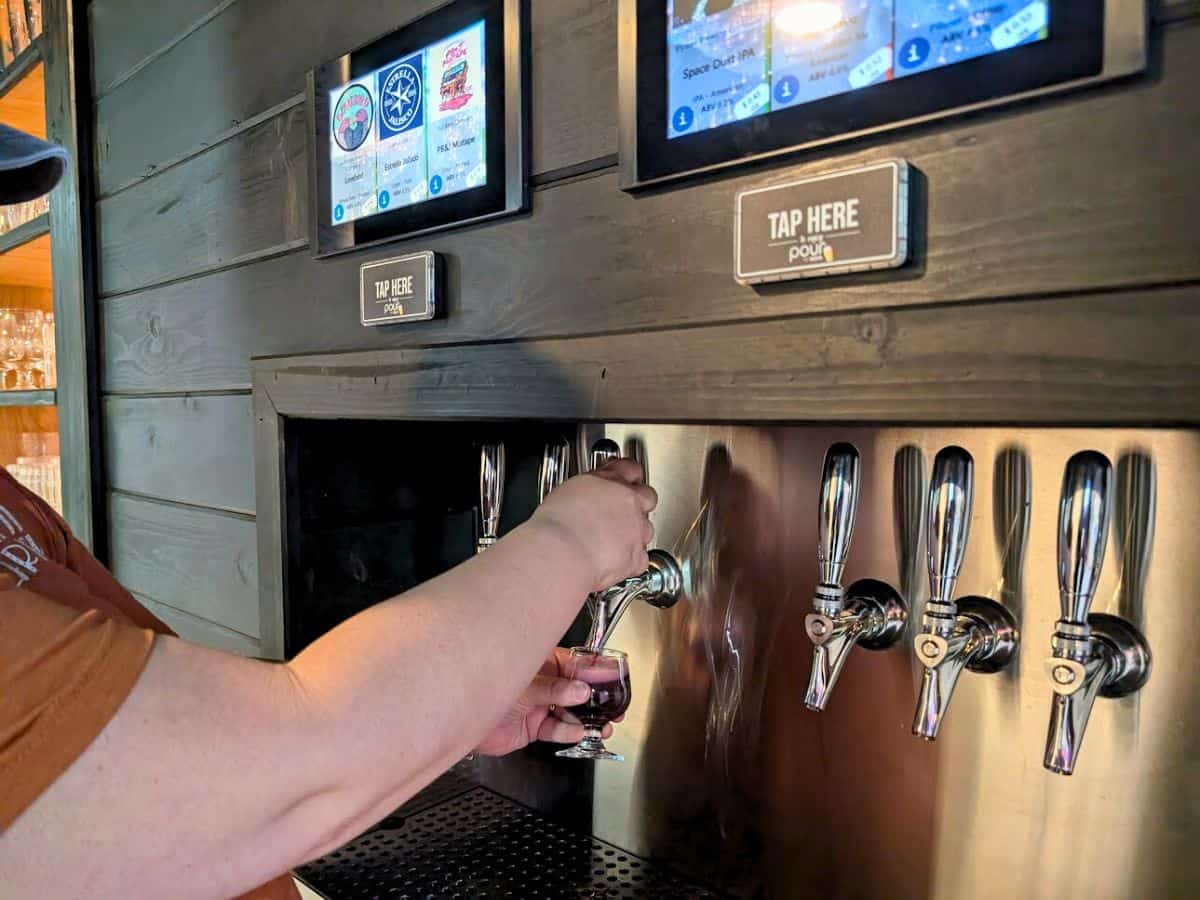 You pay by the ounce, so it’s easy to sample a little of everything before you choose what you really want to drink. They have all different sizes of glasses from tiny taste testers to full-size steins, and you’re welcome to pick your favorite.