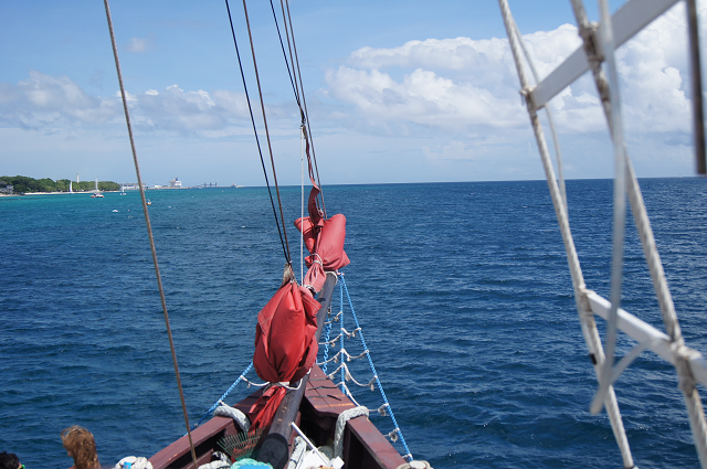 Unfortunately, we never saw a turtle, which Mister Man was disappointed by, but we did run into someone on the ship later who had found one. Shortly after we got aboard the ship again, we headed back to port which was a 45 minute sail from our anchor. The time was spent as a party with loud fun music and the crew encouraging dancing. The also performed a pirate wedding, which was cute.