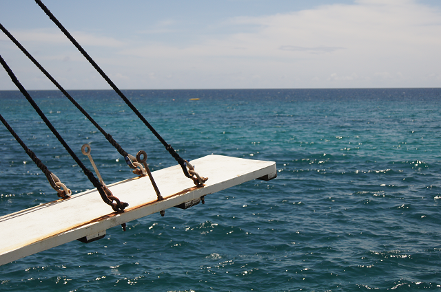 The next snorkel destination was an hour where we would be able to swim with turtles, something Mister Man in particular was looking forward to. Before that started, a plank was lowered off the side of the boat and a passenger was “forced” to walk the plank.