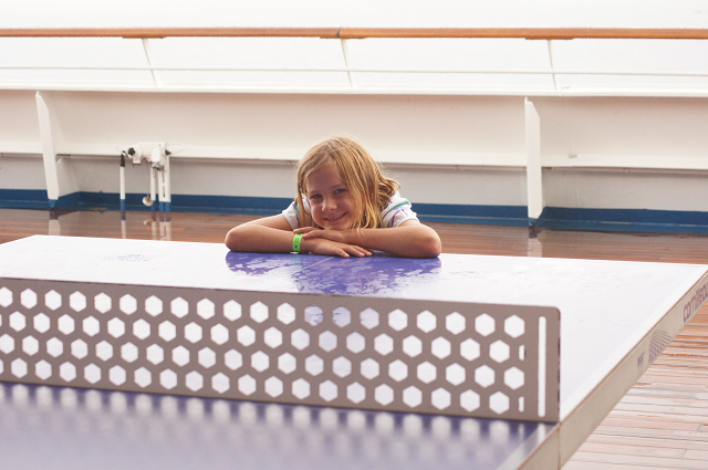 Little Miss tried her hand at ping pong, with a modicum of success. She hasn’t played previously and definitely could use a few lessons, but she loved it anyway – and that’s all that matters, right? It was easy to check out the paddles and balls on the Lido deck near the pool an easy walk from the games area, and yes, this is another complimentary activity on the Carnival Valor.