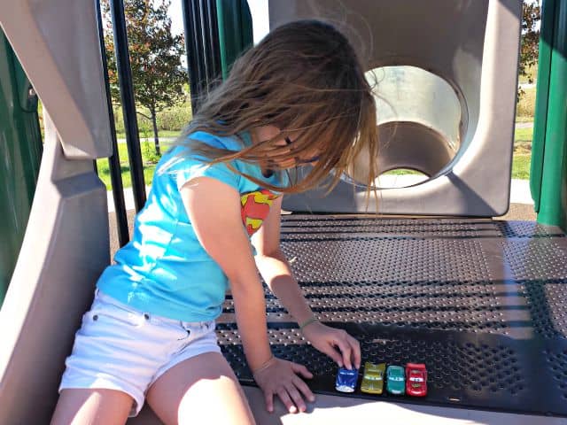 We also broke out small toys like die cast cars for the rest stops. At a couple rest stops, the playgrounds were fairly small and designed for really small kids.