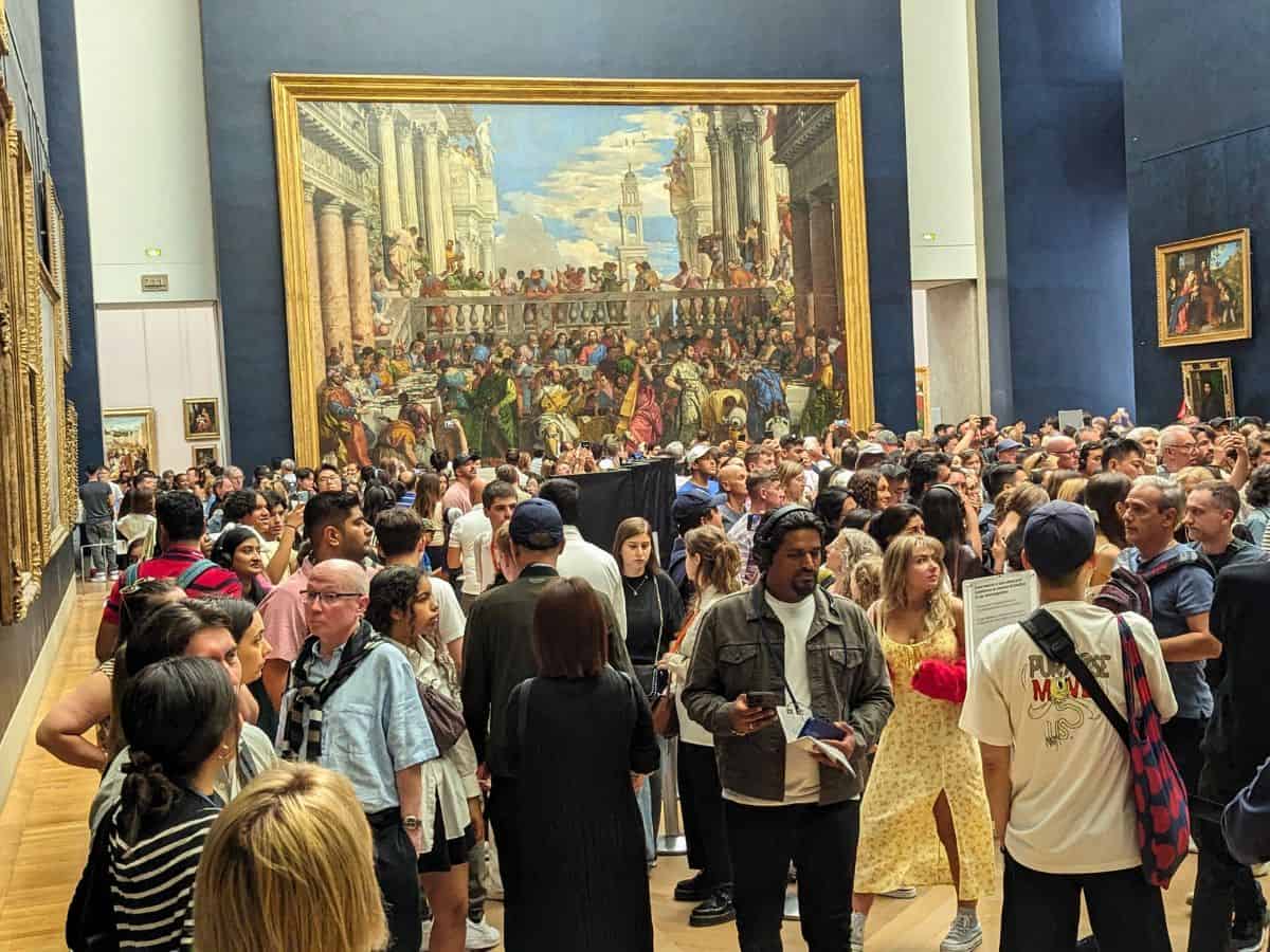 This photo I took shows an idea of part of the crowd waiting to see the Mona Lisa. And yet, so few people are paying attention to the gorgeous Wedding of Cana piece.