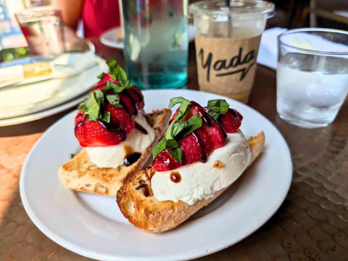 The menu leans Mediterranean with flatbreads, small plates, and generous entrees. My friend and I both selected the burrata and strawberry toast after not getting burrata at The Amsterdam Local, and this was absolutely delicious without being too heavy.