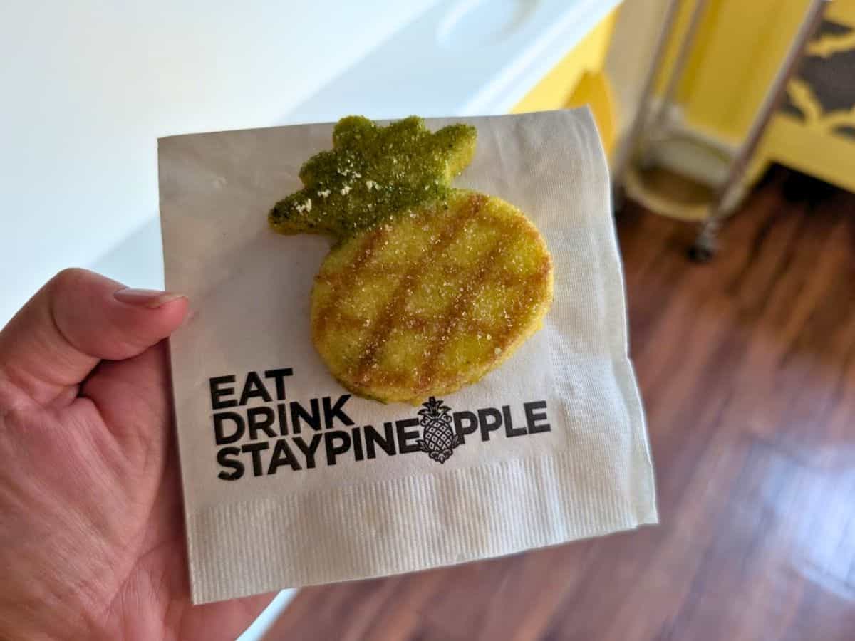 They go with the pineapple theme because the founder’s father called her his Little Pineapple when she was a child, and the nickname stuck. Pineapples are a traditional symbol of welcome and hospitality, which is the second reason and fit for the name.