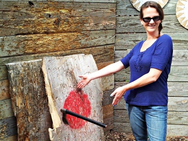 And yes, there was fun for adults, as well. My husband and I learned how to throw a tomahawk, something I never imagined I would do. We both hit the target after a bit, and I even managed to hit the bullseye. In fact, on my second go-round, I hit the center of the bullseye. Unfortunately, my husband refused to take a photo of me with it because he hadn’t managed to do that. Adults can also ride the roller coaster and the hand cars, which we both enjoyed. They can also hop on the carousel and pan for gold, plus participate in all the shooting activities.